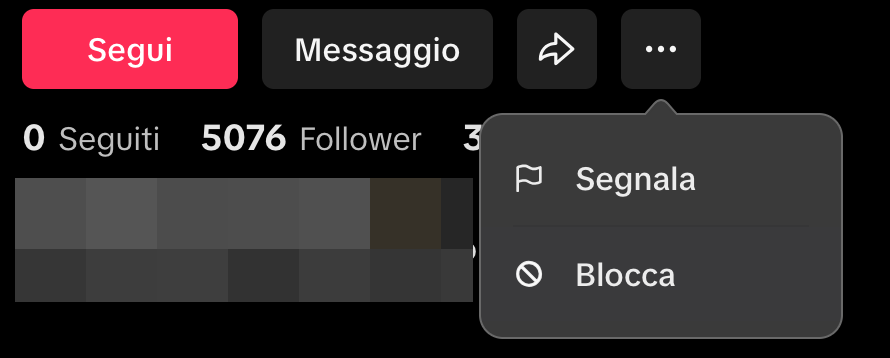 Esempio (clicca sui punti del profilo che vuoi bloccare e seleziona Blocca)