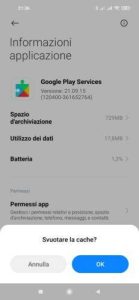 Cancellare la cache dei Google Play Services