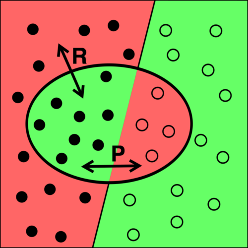 Precision e recall, a questo punto, rappresentano rispettivamente (basta guardare la freccia che indica cosa rapportare, visivamente):