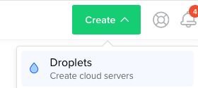 Come primo passo, una volta loggati e dopo aver pagato il primo mese, cliccate su Create in alto a destra, e selezionate Droplets – che servirà a creare un’instanza di cloud VPS da utilizzare come server per WordPress.