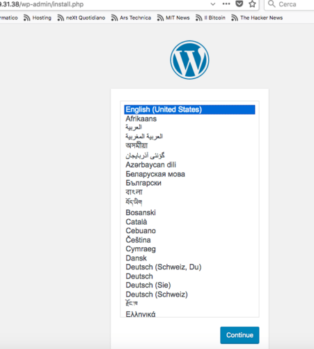 Quando avete appena installato WP, aprendo via browser l’indirizzo IP assegnatovi vedrete qualcosa del genere: