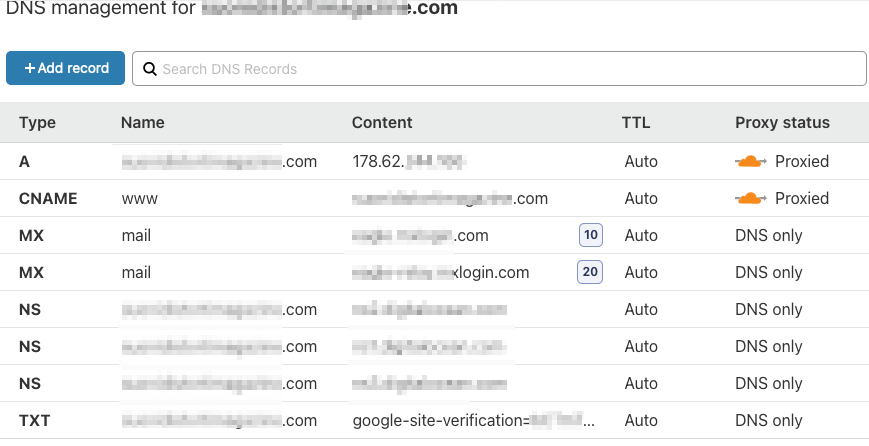 Sono i record DNS del Name Server, che servono a stabilire chi gestisce il DNS: ad esempio se volete fare in modo che sia Cloudflare a gestirvi il dominio, dovrete usare i suoi name server ed attendere che si propaghino (in media ci vuole qualche ora di tempo per farlo). Perdere il controllo del record NS significa perdere la possibilità di configurarlo, ed è la prima cosa da verificare per poter effettuare il resto delle operazioni qui descritte.